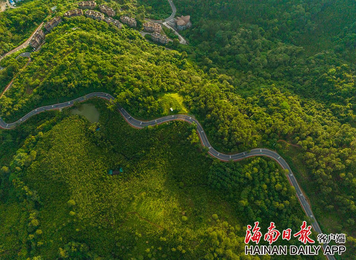 6月16日,俯瞰琼中黎族苗族自治县营根镇通往百花岭热带雨林文化旅游区的道路。海南日报记者 李天平 摄