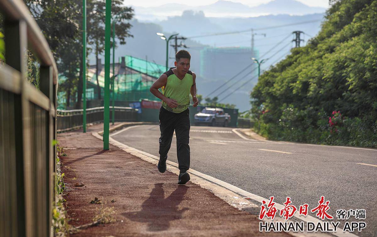 6月16日,在琼中黎族苗族自治县营根镇通往百花岭热带雨林文化旅游区的道路上,市民跑步晨练。海南日报记者 李天平 摄