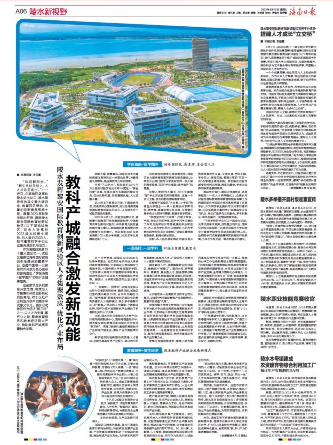 高校集聚效应,孕育着多元产业发展的机遇。在2023年陵水政府工作报告中,试验区的建设,是该县发展壮大现代服务业和精准发展高新技术产业的重要内容。