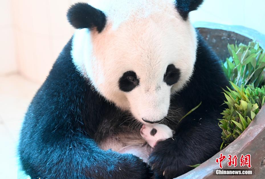 9月3日大熊猫“宝宝”和它的新生幼仔在一起。安源 摄