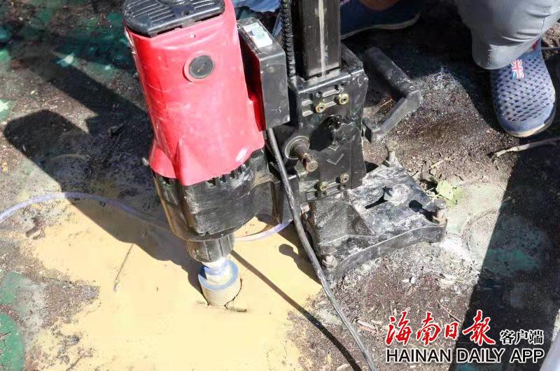 在古树周边的硬化水泥地上打洞,让古树根部“呼吸”顺畅。