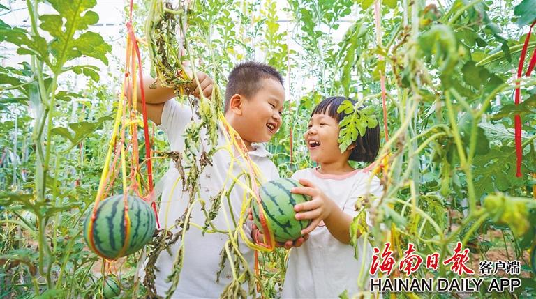 位于三亚市崖州区的国家现代农业(种业)产业园内,孩子们在参观游玩。海南日报记者 袁琛 摄