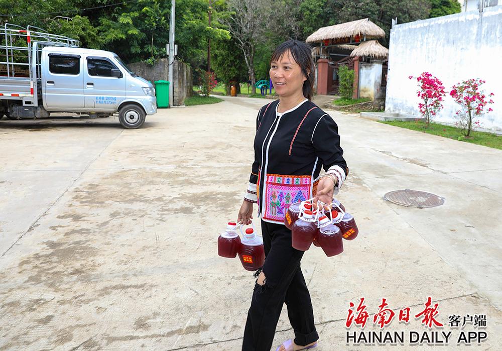 5月18日,在五指山水满乡毛纳村,村民拿出准备销售的山兰米酒。海南日报记者 李天平 摄