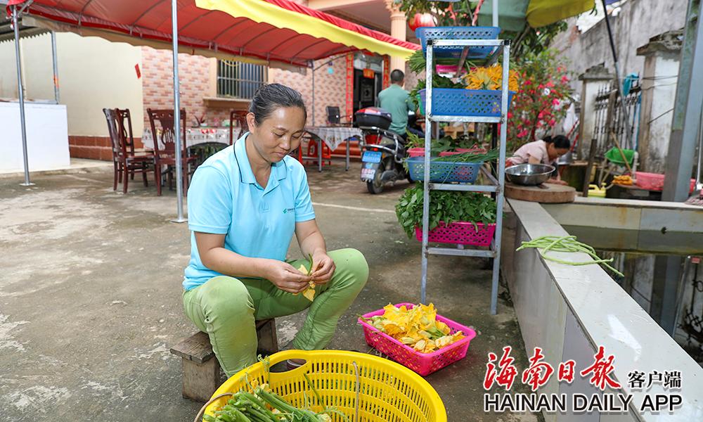 5月18日,在五指山水满乡毛纳村,村民在准备南瓜花等特色食材。海南日报记者 李天平 摄