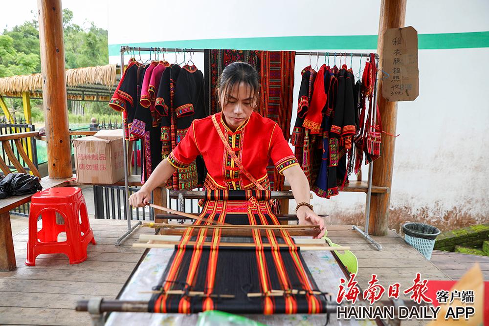 5月18日,在五指山水满乡毛纳村,村民在制作黎锦。海南日报记者 李天平 摄