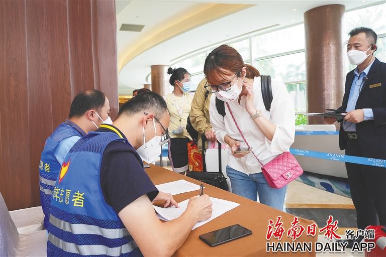 8月10日,在三亚·亚特兰蒂斯,志愿者在核对旅客信息。海南日报记者 武威 摄