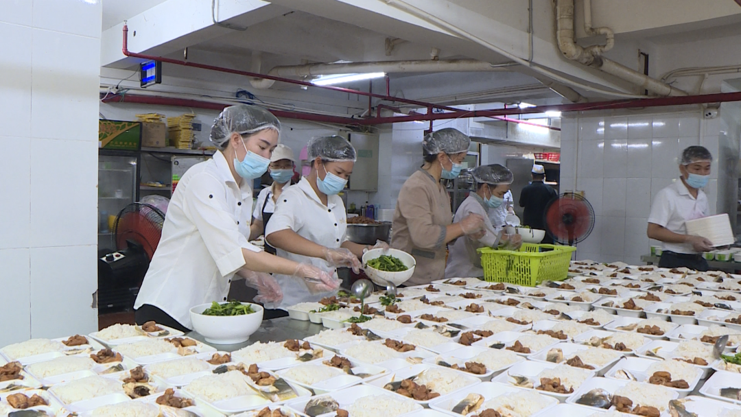 在云天酒店的餐厅看到,工作人员正在精心为白沙的医疗队搭配食材,分装打包午餐,闭环送到工作人员居住的酒店。确保每一位一线人员都能吃上“热乎饭”。