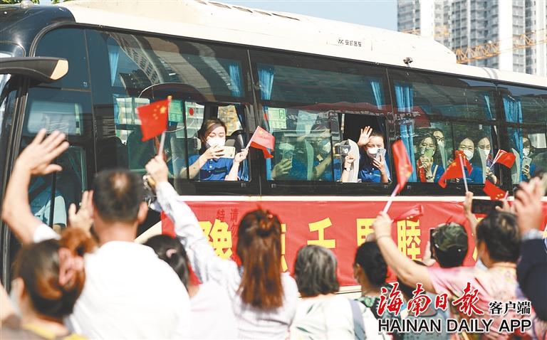9月5日上午,海口市民夹道送别河南援琼医疗队队员。海南日报记者 李天平 摄