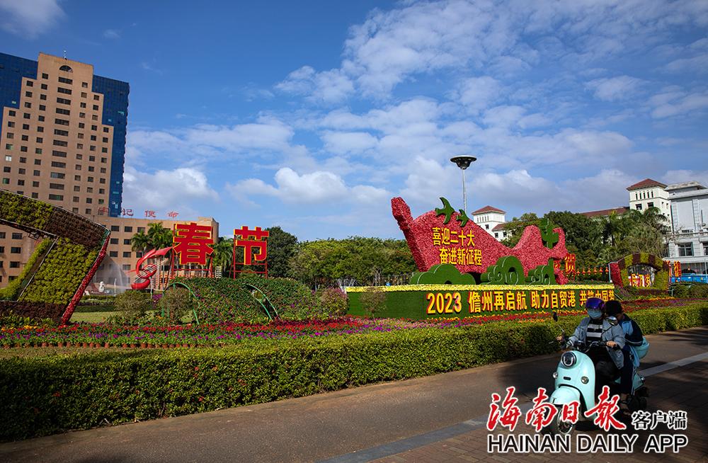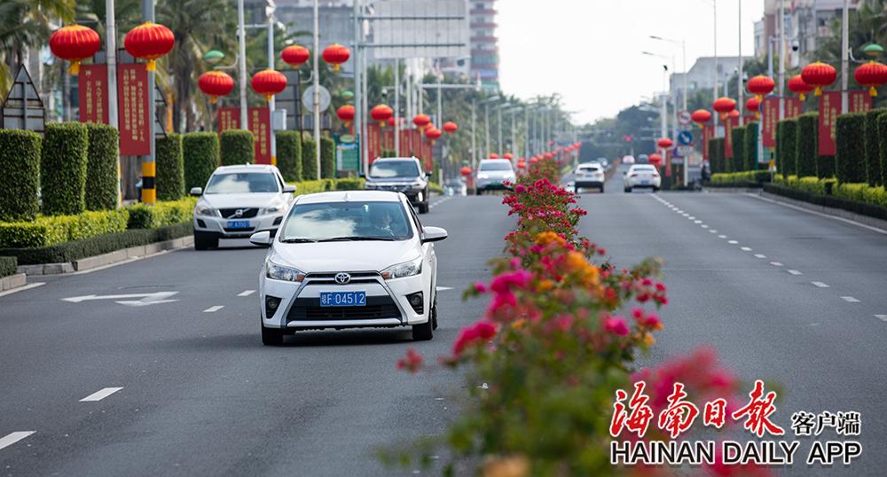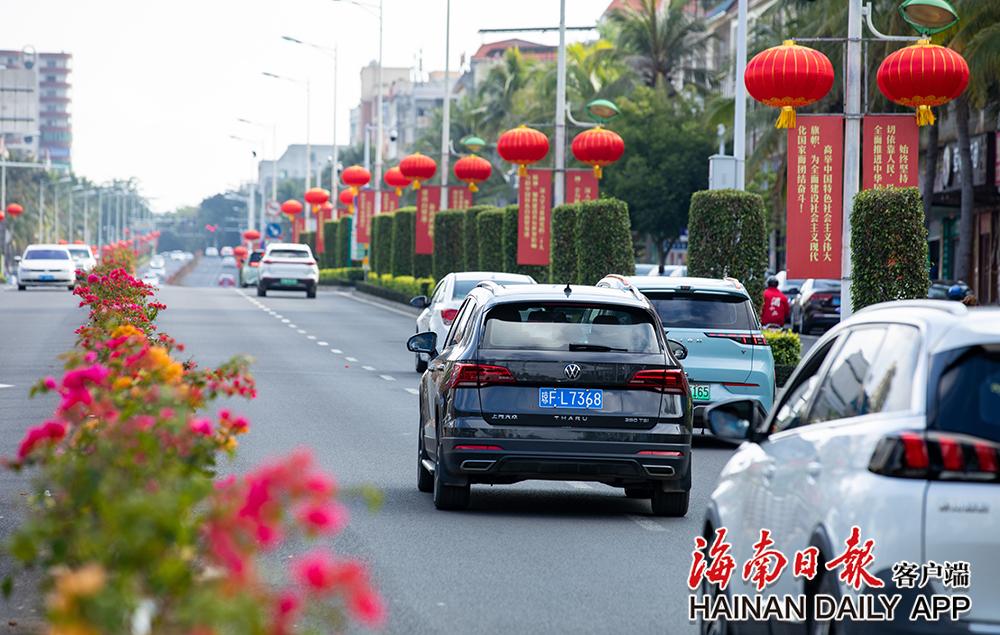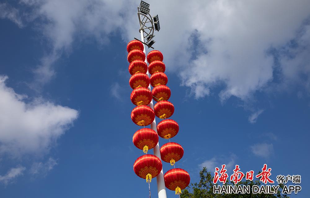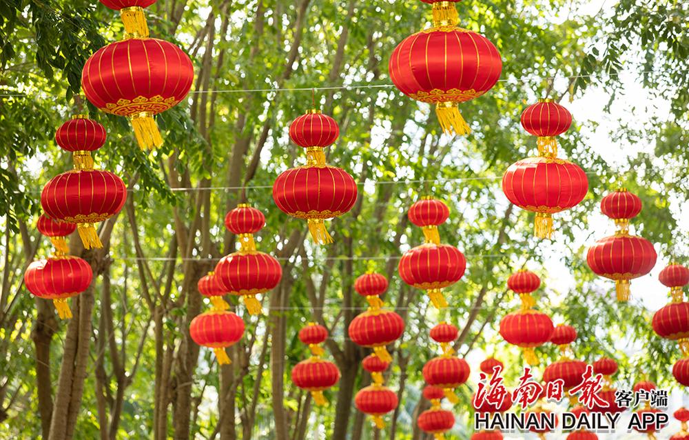 1月21日,儋州市街头张灯结彩。那大市区中兴大街、文化北路等道路两侧大红灯笼高高挂,以喜庆的氛围迎接新年到来。