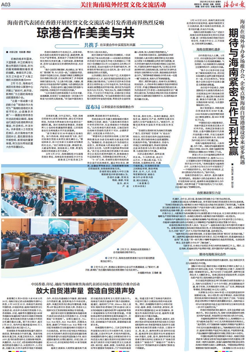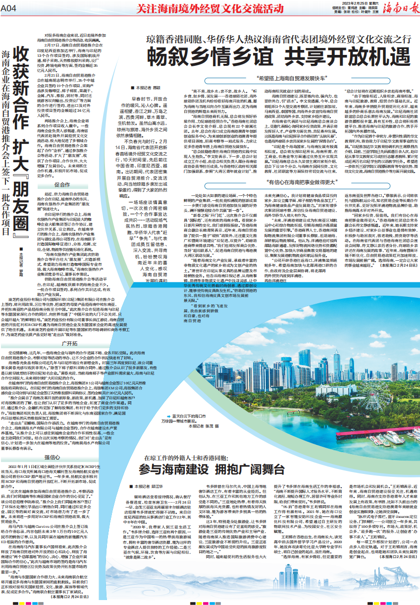 2月25日,海南日报2个整版关注海南境外经贸文化交流活动,以下为版面图和报道全文↓↓↓