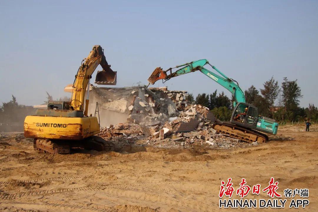 3月9日上午,万宁市万城镇依法对春园湾中电建万宁100万千瓦级漂浮式海上风电试验项目陆上用地范围内的最后三栋建筑物进行拆除,伴随着拆除机械的轰鸣声,顺利完成了整个项目的清表工作。