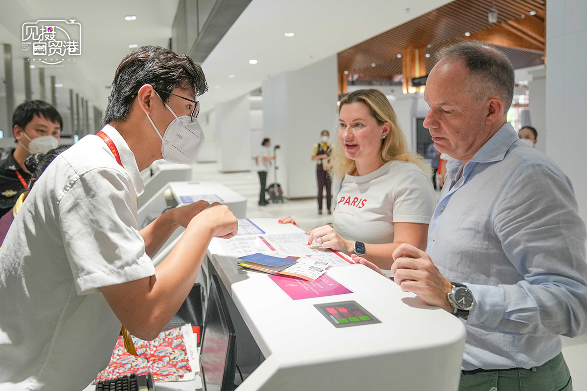 7月1日,在三亚凤凰国际机场国际航站楼,前往香港的外籍旅客在值机柜台值机。海南日报记者 王程龙 摄