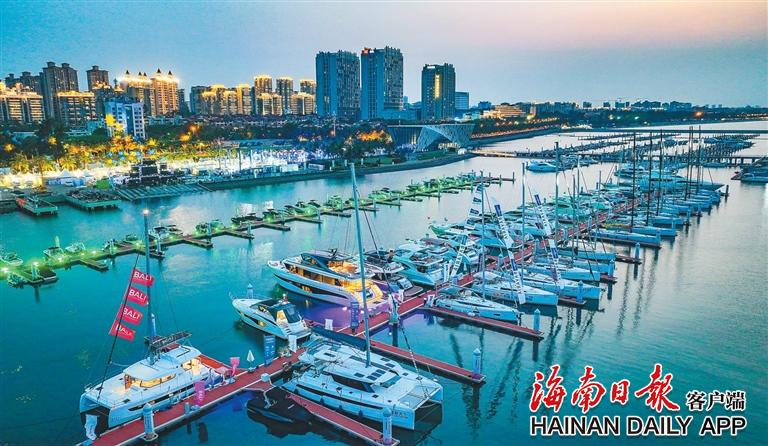 4月12日,在海口市国家帆船基地公共码头,参加第四届中国国际消费品博览会游艇展的船艇停靠在泊位上。海南日报记者 陈元才 摄