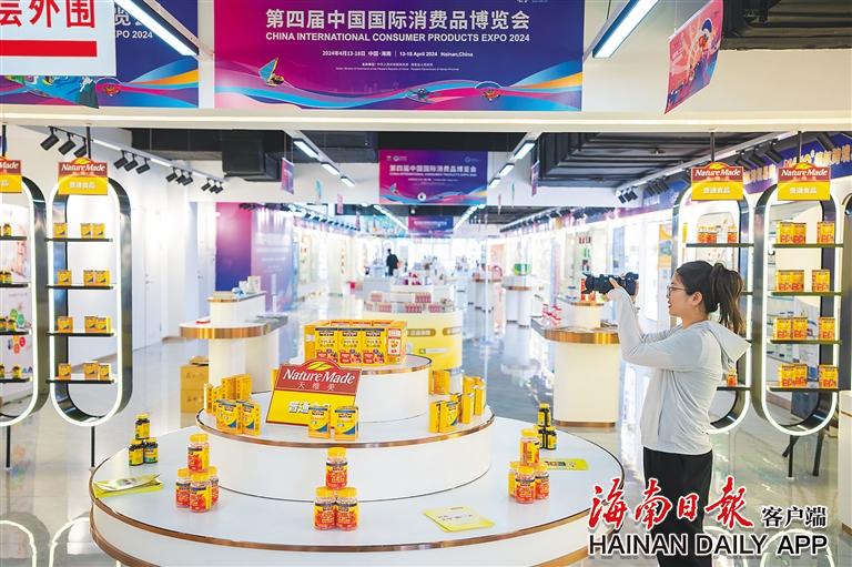 4月12日,在消博会国际健康消费分展区,工作人员在拍摄产品。本报记者 袁琛 摄