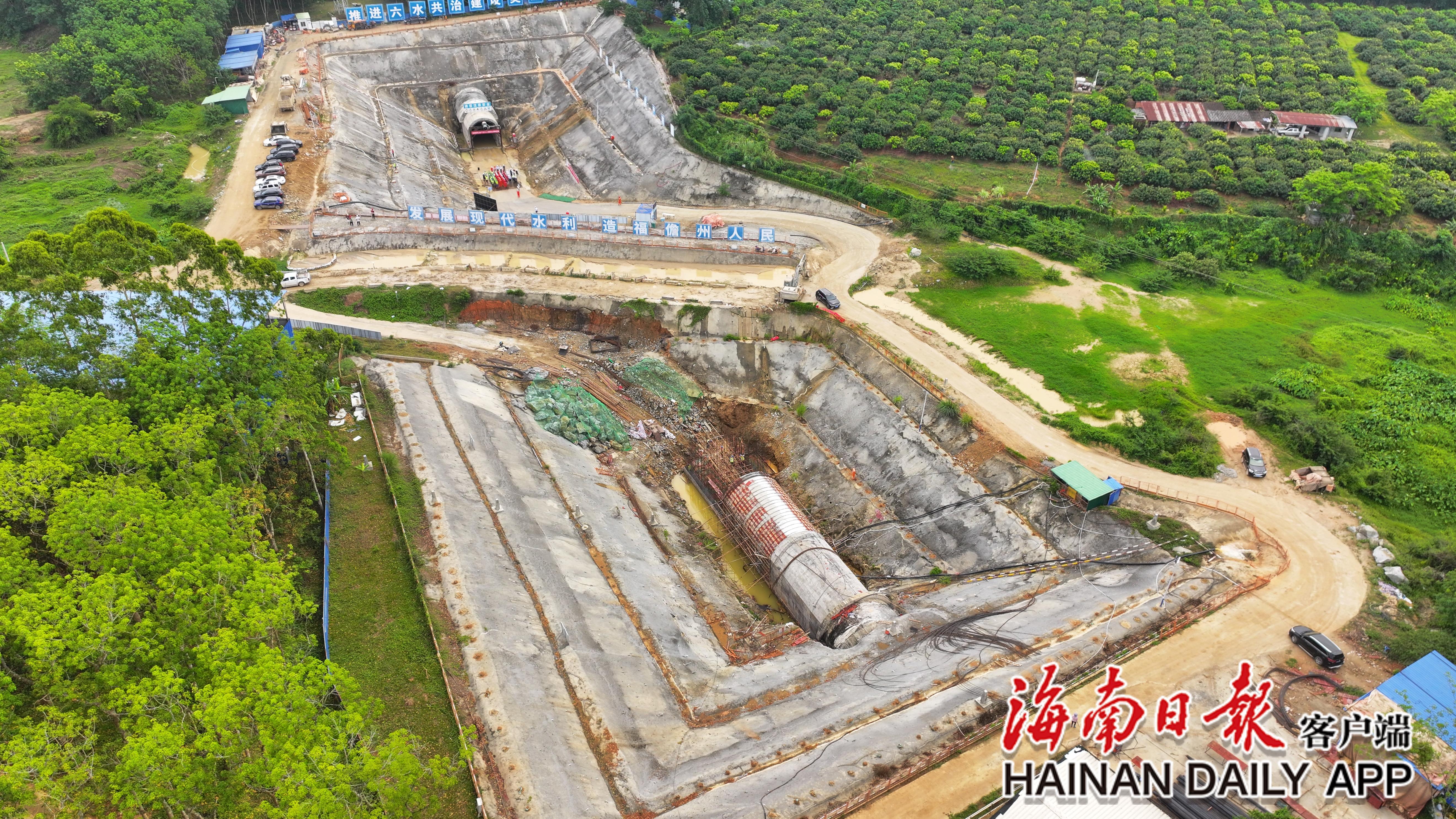 儋州市松涛东干渠改线工程隧洞全线贯通仪式现场。