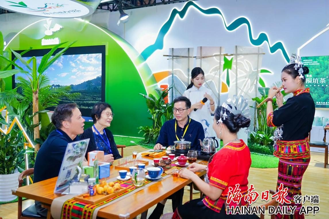 2024年第六届中国国际茶叶博览会(以下简称“茶博会”)于5月17日—21日在杭州国际博览中心举办。海南以“雨林藏大叶 海岛茗香远”为主题,设置海南雨林大叶茶馆,首次亮相就吸引众多客商对接洽谈。