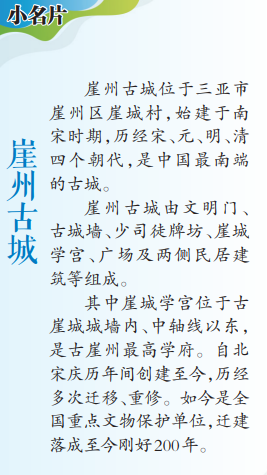 赏古建筑之美,寻先贤名士,品崖城美食……