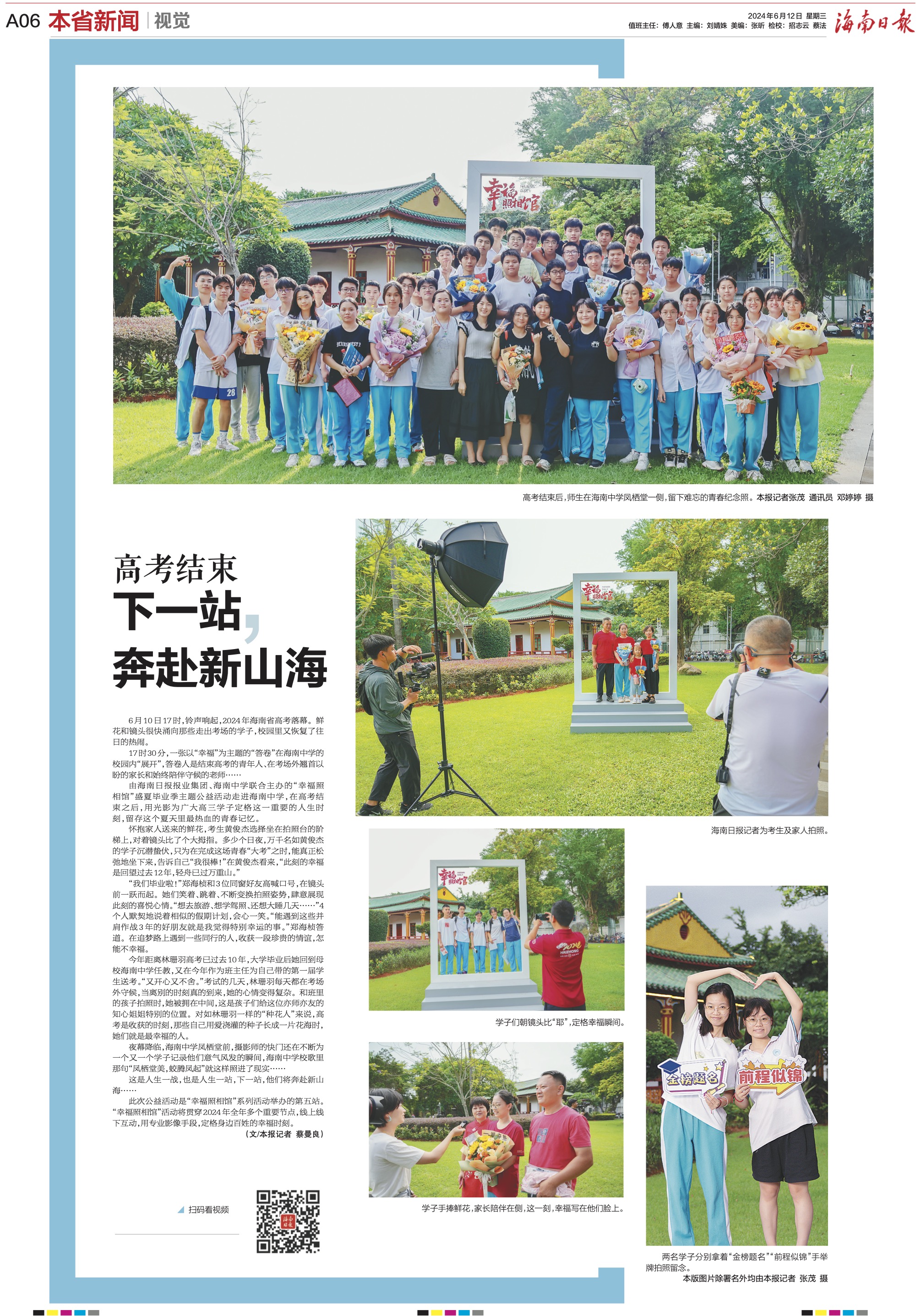 由海南日报报业集团、海南中学联合主办的“幸福照相馆”盛夏毕业季主题公益活动走进海南中学,在高考结束之后,用光影为广大高三学子定格这一重要的人生时刻,留存这个夏天里最热血的青春记忆。