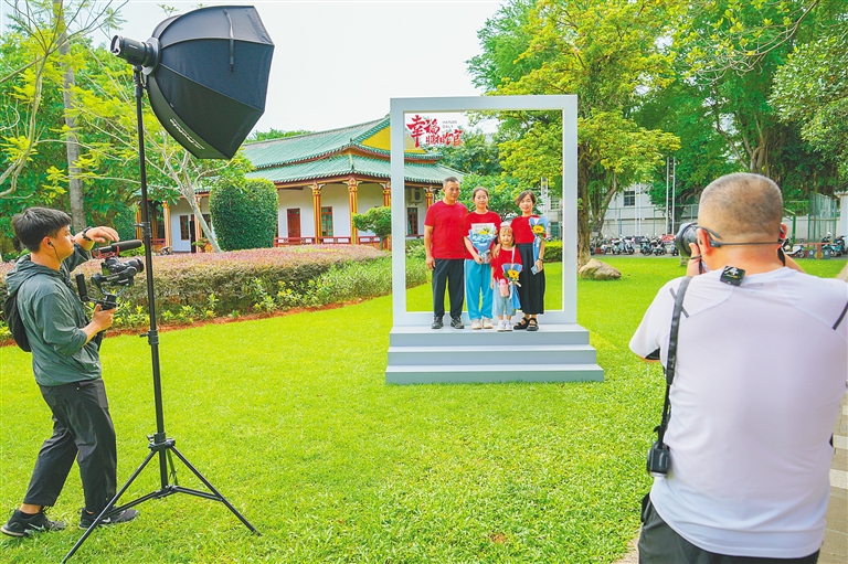 海南日报记者为考生及家人拍照。海南日报记者 张茂 摄
