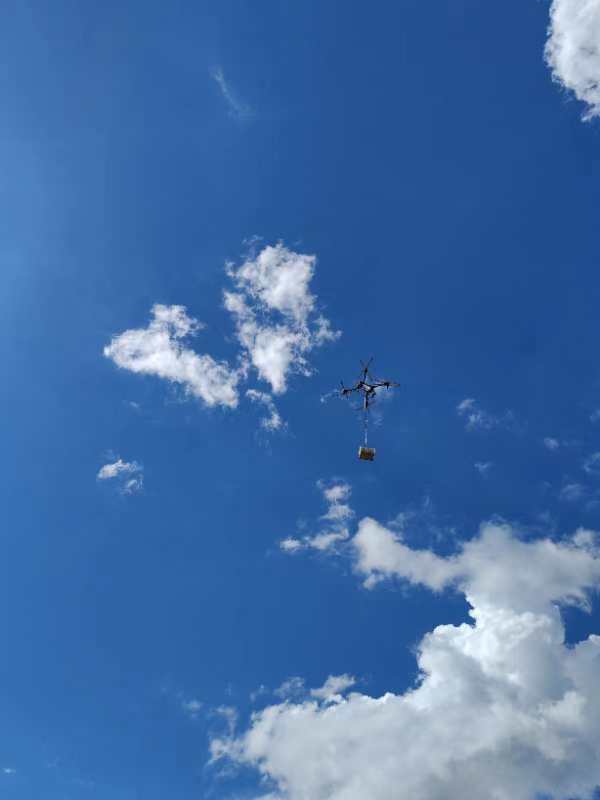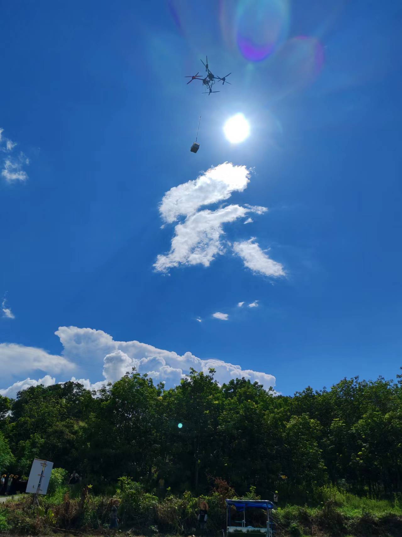 随着无人机隆隆的声音响起,无人机“叼”起25盘30公斤重的秧苗,飞机手操控着无人机将稻苗“空投”到田埂上,一来一回仅需两三分钟,让原本人工挑担的稻苗轻松实现了“空降”,随后只需一名工作人员接住并摆放至插秧机上,周而复始,无人机按照设定程序,在田间往返运送秧苗。