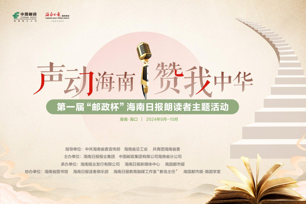 本届“邮政杯”海南日报朗读者主题活动由中共海南省委宣传部、海南省总工会、共青团海南省委指导,海南日报报业集团、中国邮政集团有限公司海南省分公司联合主办,海南报业发行有限公司、海南日报新媒体中心、南国都市报承办,海南省图书馆、海南日报读者俱乐部、海南日报教育融媒工作室“教岛主任”、南国都市报·南国学堂协办。
