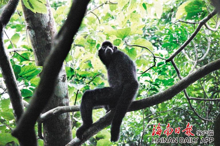 清晨,海南长臂猿会用它们高亢婉转的叫声,告诉其他长臂猿“这是我的家”,它们还会用叫声和家人保持联系。