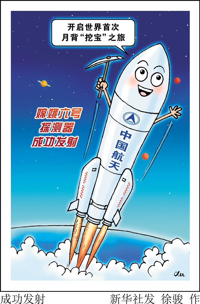 嫦娥六号从地球出发,飞到月球,然后在月球背面工作48小时,最后带着宝贵的月球土壤样本回家。这次探险大概需要53天。