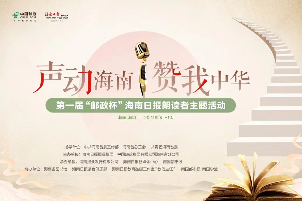 由中共海南省委宣传部、海南省总工会、共青团海南省委指导,海南日报报业集团、中国邮政集团有限公司海南省分公司联合主办的第一届“邮政杯”海南日报朗读者主题活动于9月1日起启动。