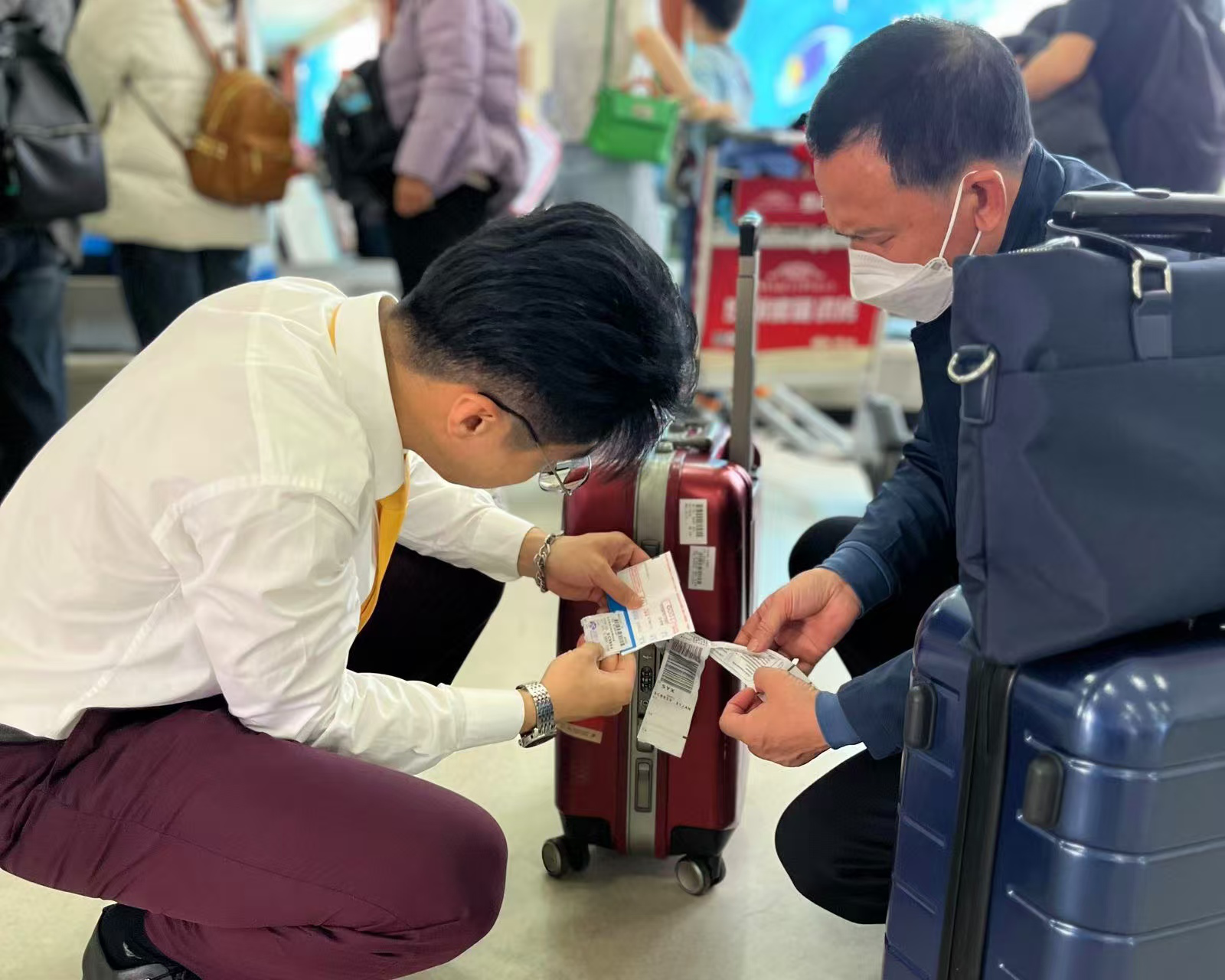 聚焦老年旅客出行难点,三亚机场成立了银发服务队,协助首次乘机、无人陪伴的老人群体办理乘机手续。在值机候机区、特殊旅客服务台、登机区等多个点位为老年旅客提供专人问询答疑、引导帮扶、方言保障、无陪老人乘机手续办理、不正常航班退改签协助等多项志愿服务,为老年旅客提供帮助。同时,针对老年旅客组团出行的情况,三亚机场的“银发”团队旅客预约值机服务及安检专检通道,助力老年旅客顺畅出行。