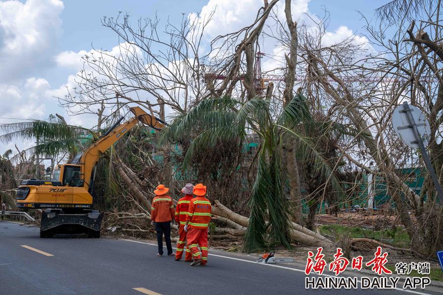 9月16日,文昌水北村,工作人员在清理倒伏的树木。海南日报全媒体记者 袁琛 摄