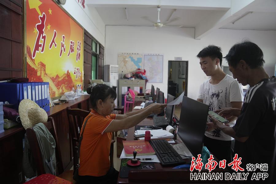 9月16日,文昌水北村,村干部为村民办理业务。海南日报全媒体记者 袁琛 摄
