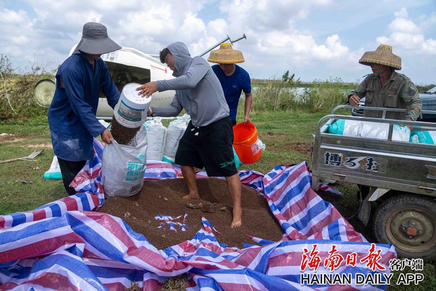 9月16日,文昌水北村,村民在装运鱼料。海南日报全媒体记者 袁琛 摄