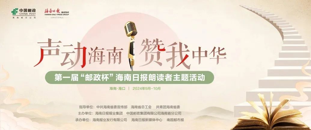 本届“邮政杯”海南日报朗读者主题活动由省委宣传部、省总工会、共青团海南省委指导,海南日报报业集团、中国邮政集团有限公司海南省分公司联合主办;海南报业发行有限公司、海南日报新媒体中心、南国都市报承办;海南省图书馆、海南日报读者俱乐部、海南日报教育融媒工作室“教导主任”、南国都市报·南国学堂、海南日报理论评论融媒工作室“海客谈”、琼台师范学院、国家语言文字推广基地(琼台师范学院)协办。