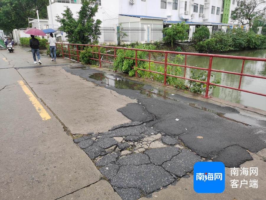 “桥裂了,路边护栏也倒了,很长时间都没人来修,太危险了!”家住海口福安路附近的陆先生报料称,福安小桥是居民出行的重要途径,而该桥梁路面出现下沉、破裂情况严重。桥西北侧的河边护栏,也因被台风吹倒,存在安全隐患。