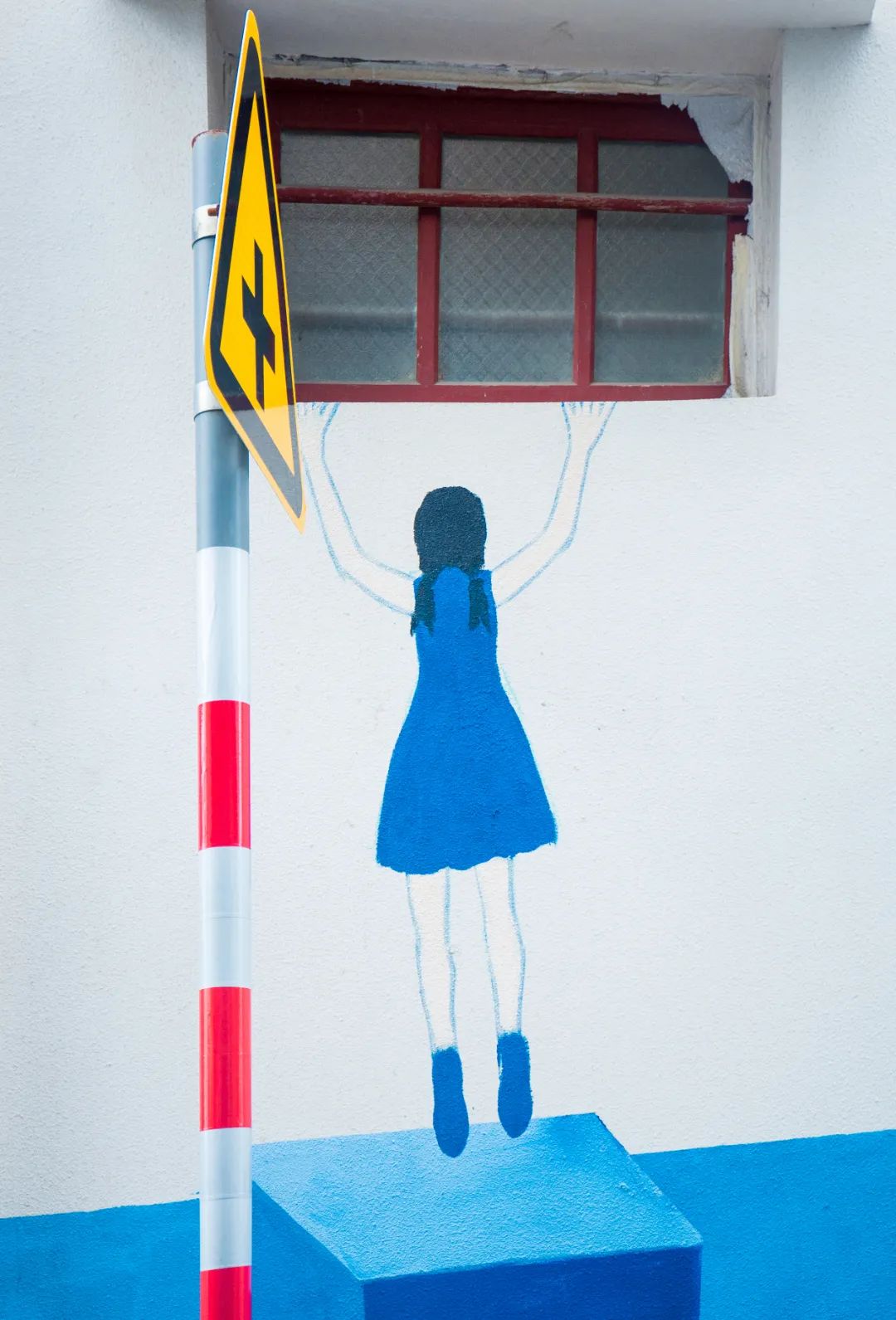 街上布满色彩明亮的趣味涂鸦,仿佛走进了童话世界里。小镇里每条街道的尽头都能通向大海,走走停停,美好定格。