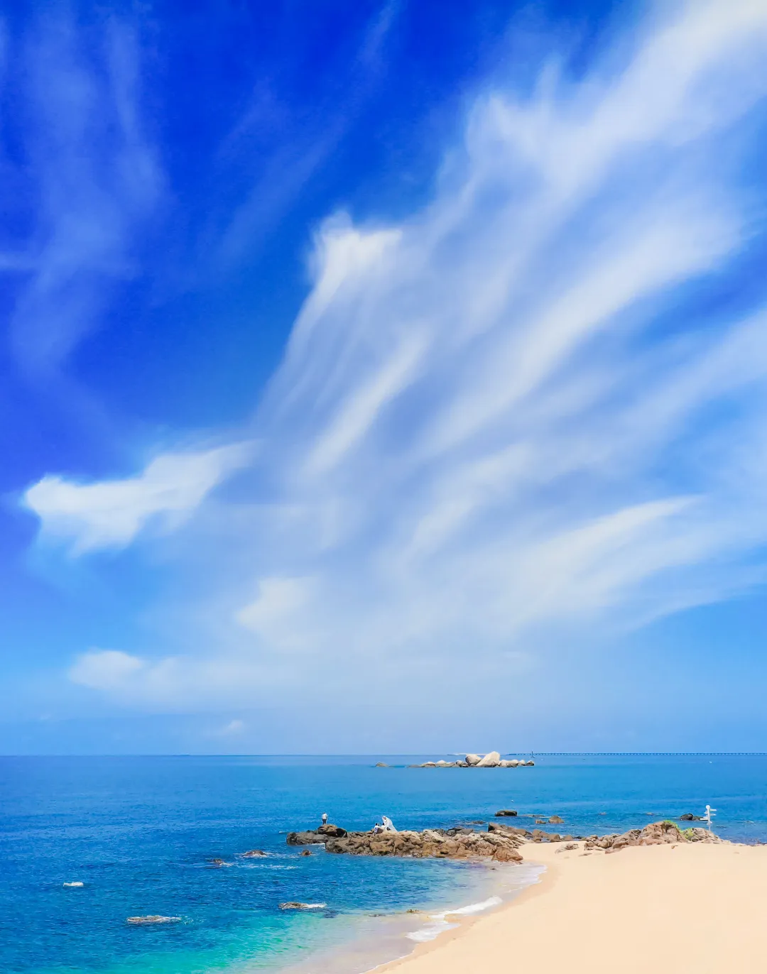 大多数时候,三亚的天,都是湛蓝湛蓝的,不同深度的蓝色,也是三亚最浪漫的日常。