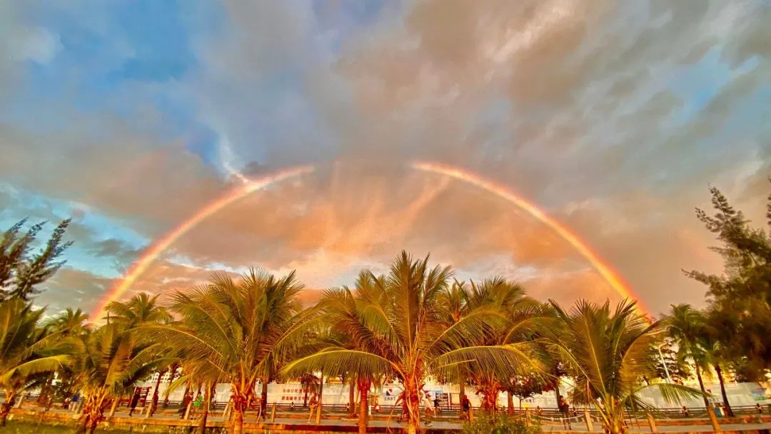 光芒万丈的日晕、清晰可见的彩虹、没有“至尊宝”的七彩祥云……三亚的天空实在是“看头”十足。