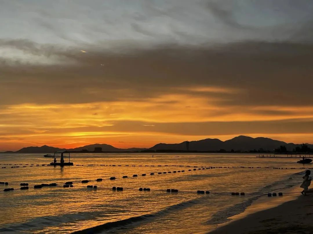 三亚浪漫又绵长的夕阳,总是氤氲整片天空,染红了云朵,染红了海,然后再一丝丝地收敛自己的光芒,一点点沉入大海。