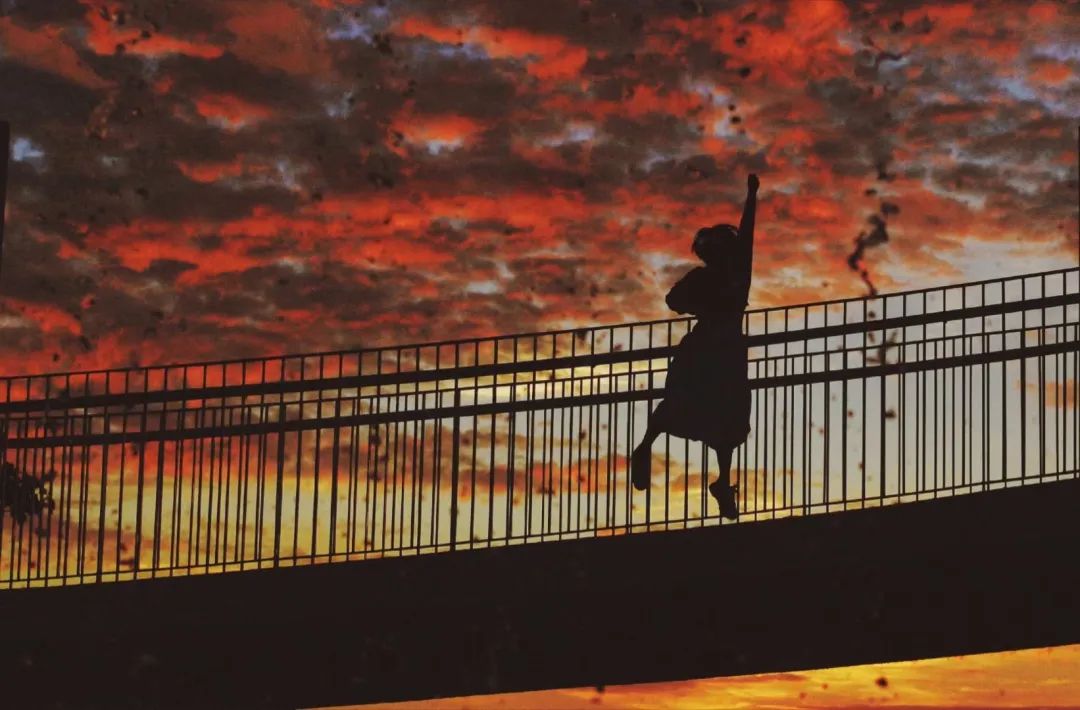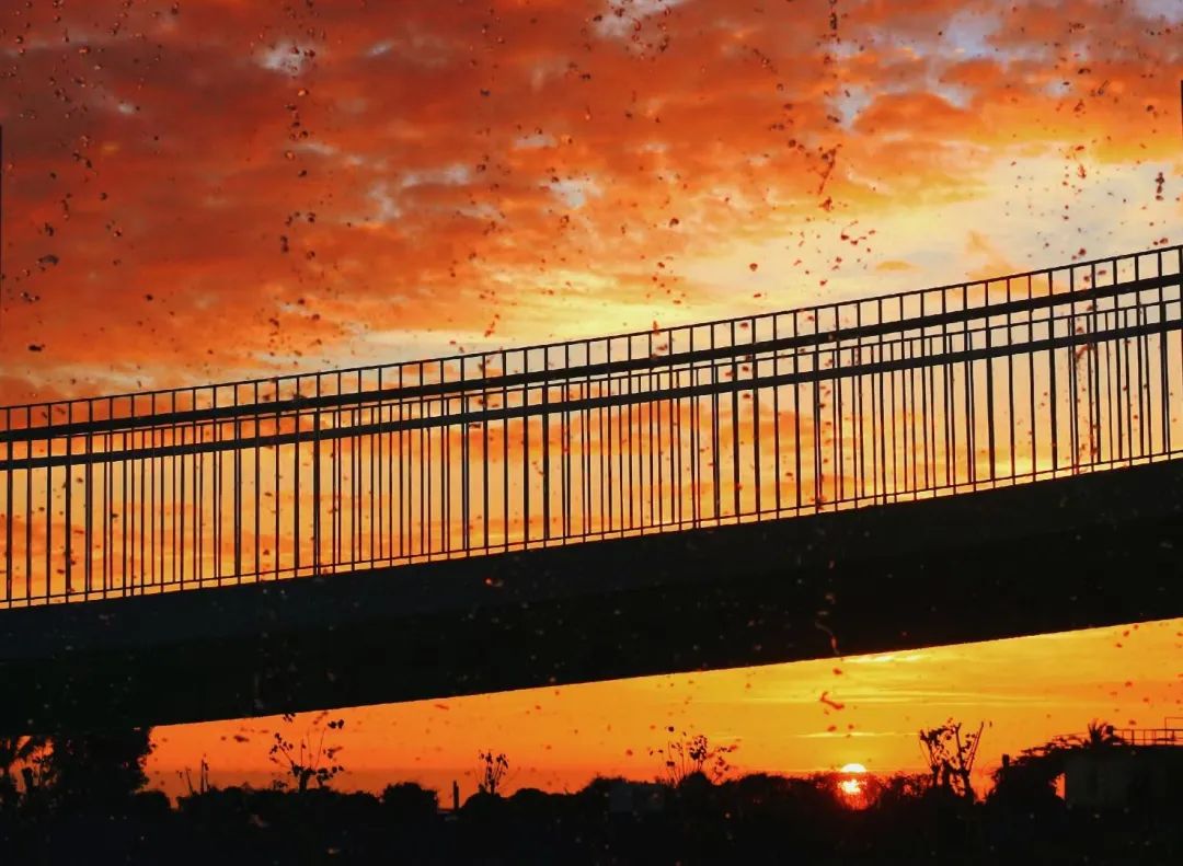晚霞先是温柔地给天幕镶上金边,再如泼墨般染红一切,眨眼间天翻地覆,余晖晕染整片天空,整个城市都泡在这橙红色的夕阳里,既霸道又柔情。