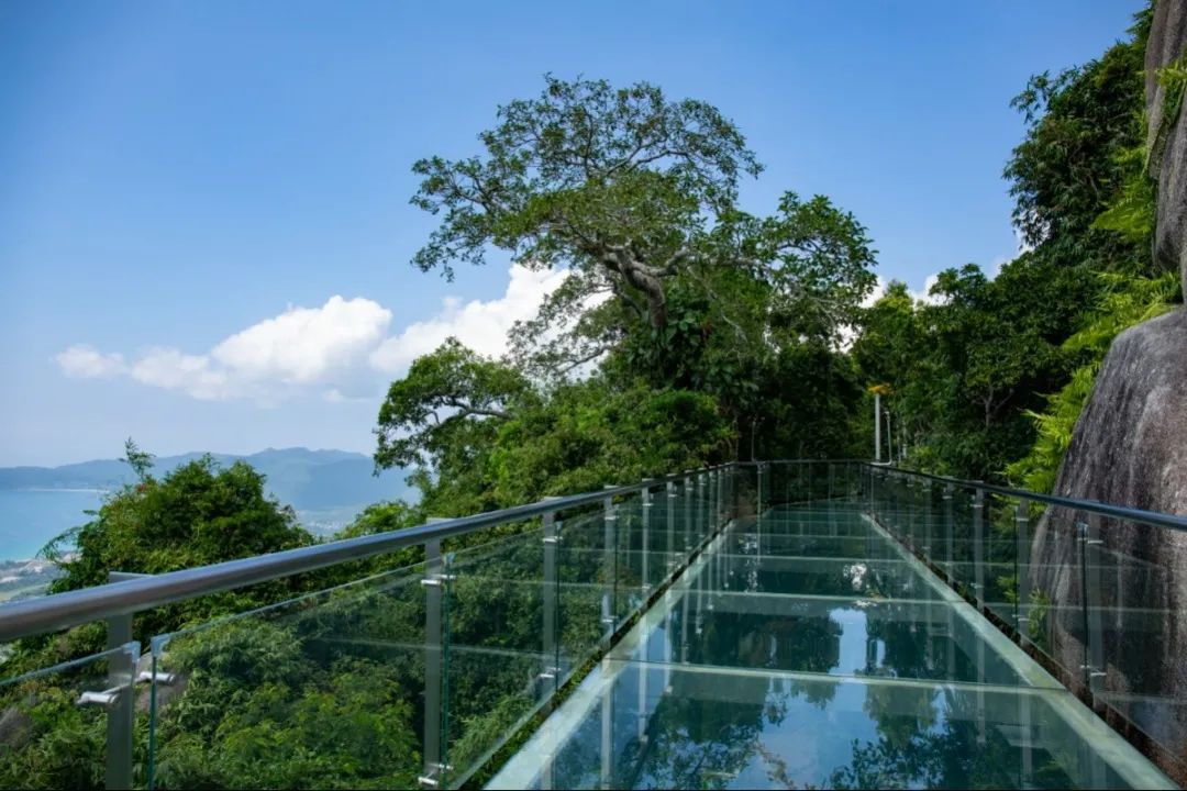 亚龙湾热带天堂森林公园依山傍海,独占山海林热带雨林景观,拥有巨大海景玻璃栈道,多处可以眺望山海景观,天高、云淡、气净、景美,身处其中,零距离贴近大自然,感受人与自然相融的奇妙境界。