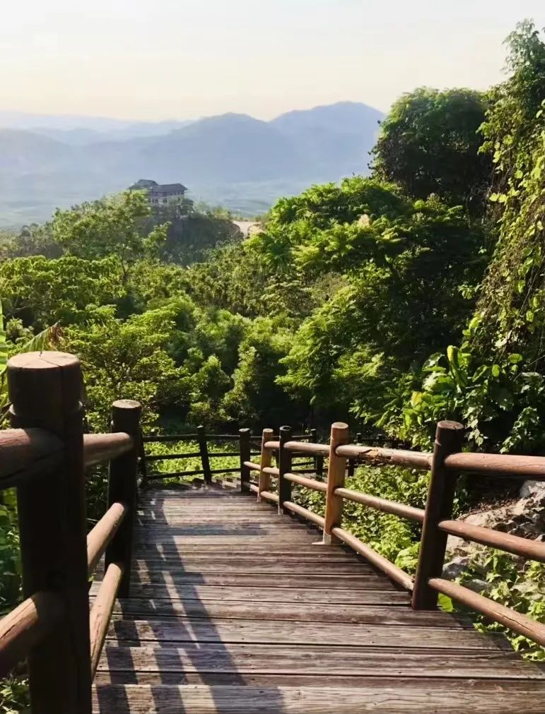 在三亚抱龙国家森林公园登高而上,途中穿越槟榔园、梯田、稻田、小溪……一路上都是纯粹的美景,两座山都能看日出云海和绝美日落!