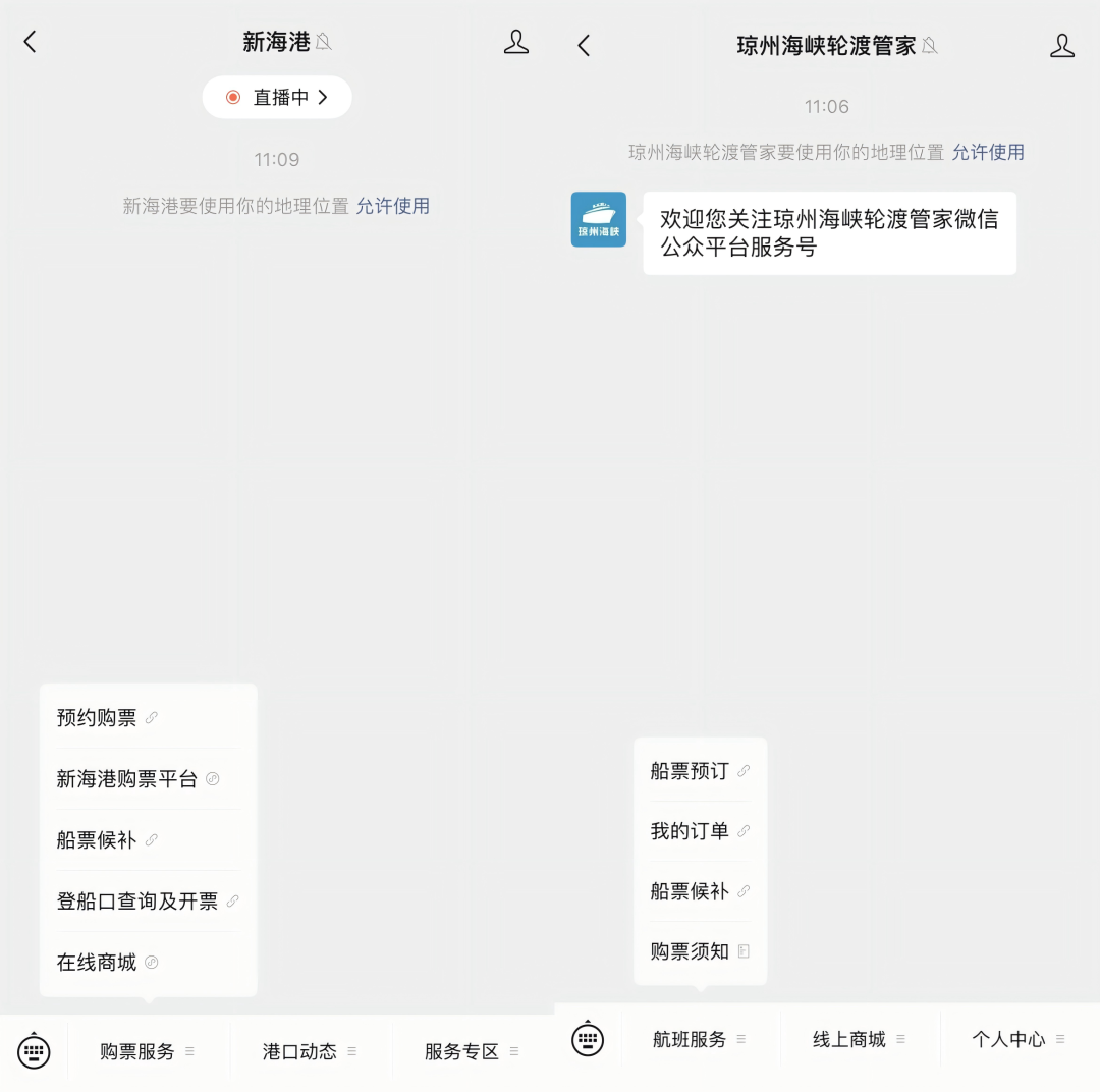 *关注“新海港”公众号,点击“购票服务—船票候补”;或“琼州海峡轮渡管家”公众号,点击“航班服务—船票候补”。