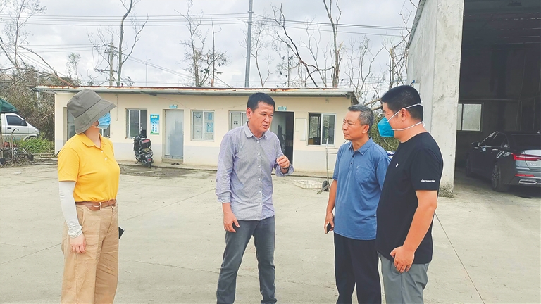 2024年9月10日,林鹏(左二)和文昌涉农部门有关负责人商量恢复生产对策。(受访者供图)