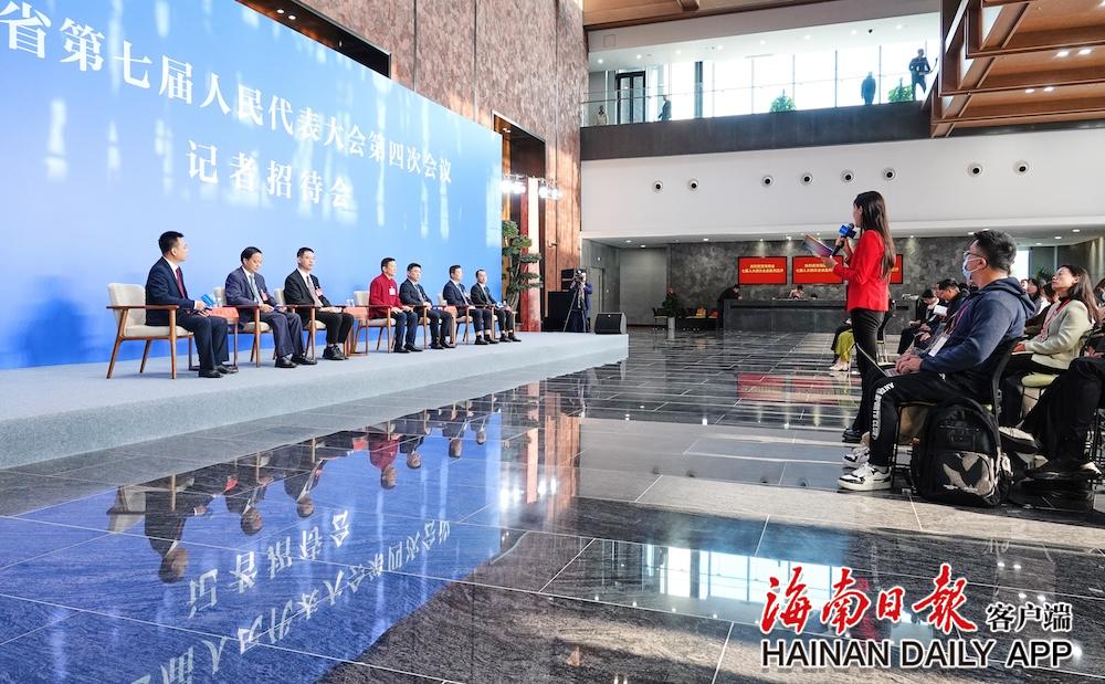 1月17日上午,省七届人大四次会议记者招待会(第二场)。图为记者在招待会上提问。海南日报全媒体记者 封烁 摄