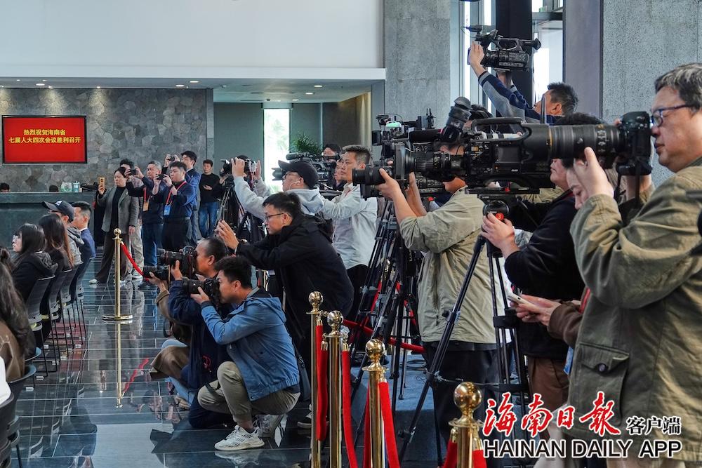 1月17日下午,省七届人大四次会议记者招待会(第三场)。图为媒体记者聚焦招待会。海南日报全媒体记者 封烁 摄