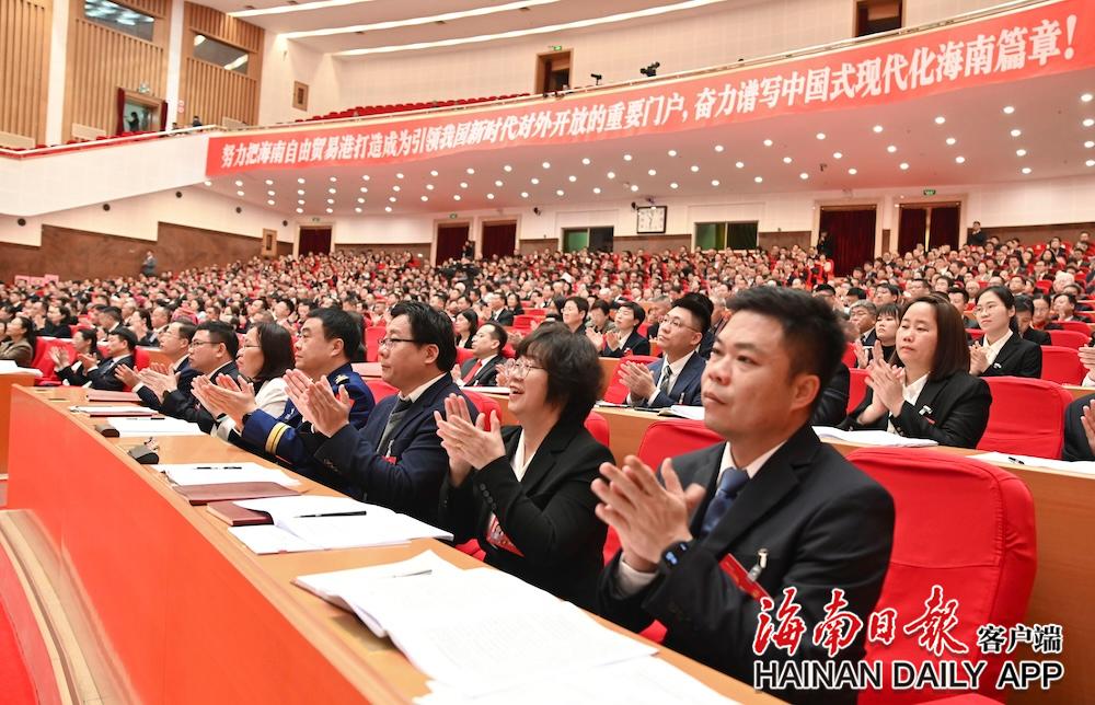 1月14日,省七届人大四次会议在省人大会堂开幕。图为代表听取政府工作报告时热烈鼓掌。海南日报全媒体记者 王凯 摄
