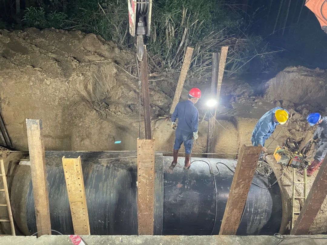 21时50分许,新的原水管道已经下坑,这标志着抢修工作进入关键阶段,预计最快22日凌晨3时完成焊接工作。焊接之后,工作人员将进行现场基坑回填及通水前管道排气工序,确保管道的正常运行。