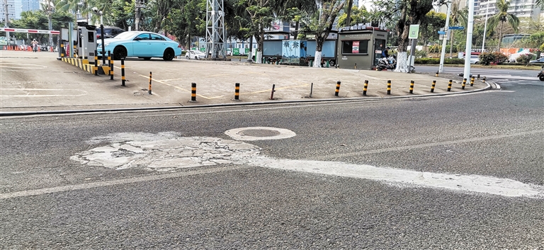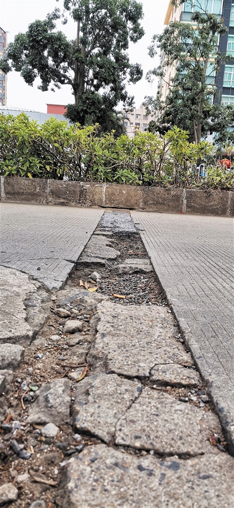 在海口龙华路靠近海口市龙华小学附近的一处路面上,记者也看到了一处疑似此前开挖埋设设施后进行回填修复的路面明显凸起,由于此前回填时边缘的水泥松动脱落,中间的回填区域比旁边的路面也高出不少,不仅让骑行经过的车辆颠簸,也容易造成车轮磕碰打滑。