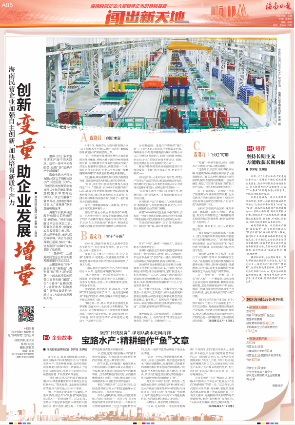 从“一条鱼”到“一个果”,从“上天”到“入海”……不难发现,这些民营企业依托海南资源禀赋、聚焦海南发展所需,正是在因地制宜中开拓创新,推动一批具有海南特色的新质生产力加快形成,也让自身发展实现“长红”可期。