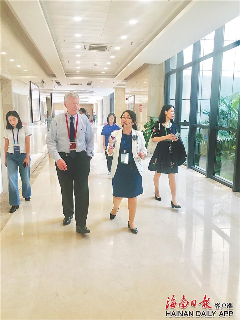 蒋秀娟(前排右)在博鳌超级医院接待外宾。